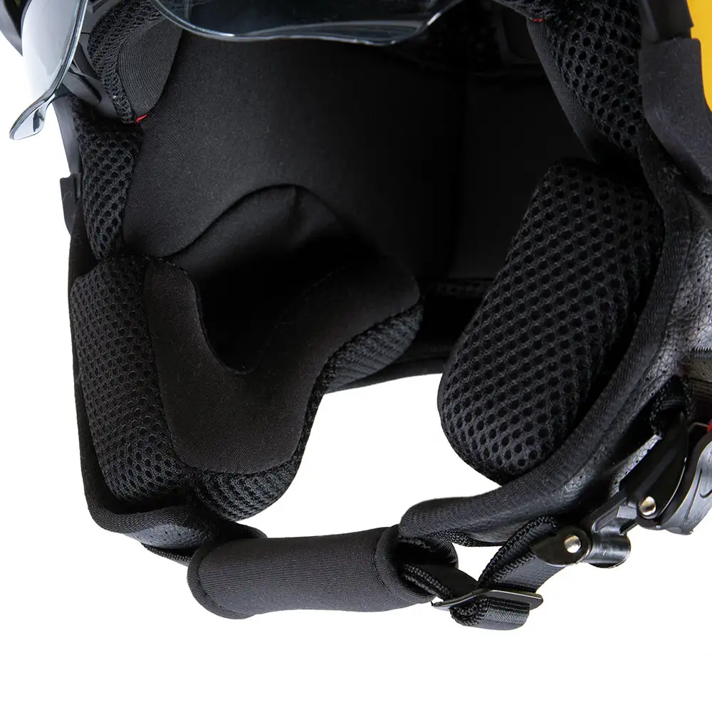 – Cinturino con passante sottogola in microfibra anti–irritante