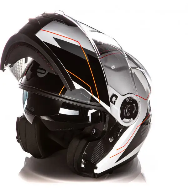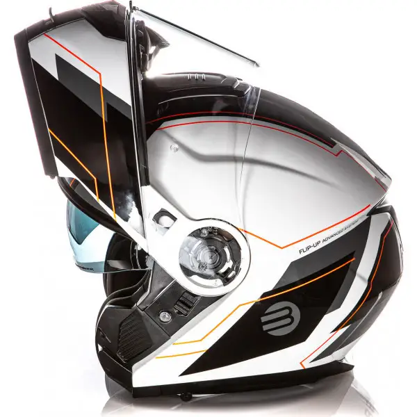 Compatto e confortevole il Tank di Befast dispone di visiera chiara antigraffio con predisposizione per Pinlock, e occhialino parasole integrato. La doppia omologazione ti permette di usarlo comodamente sia in città che in viaggio sia in modalità aperta, che con mentoniera abbassata. Gli interni sono removibili e progettati per essere compatibili con i sistemi bluetooth e per offrire il massimo confort anche a chi porta gli occhiali.