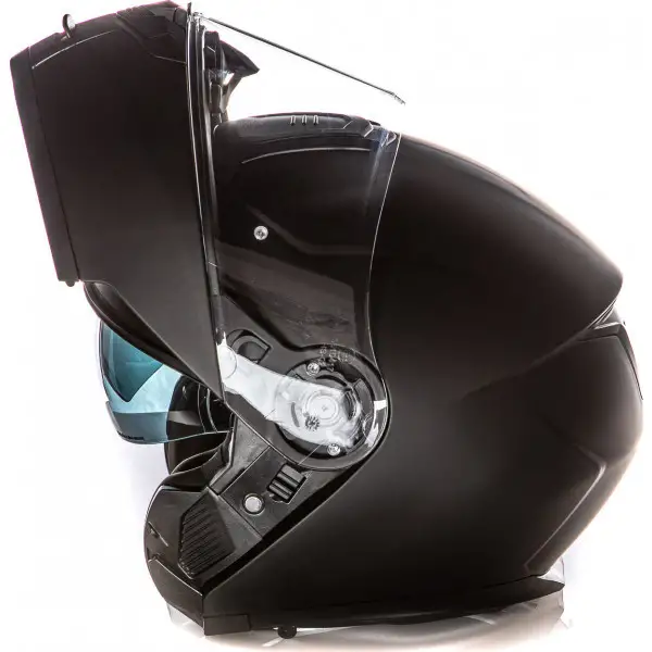 – Con visierino parasole a scomparsa stamapato in Policarbonato , antigraffio , Fumè al 65% a sgancio rapido.