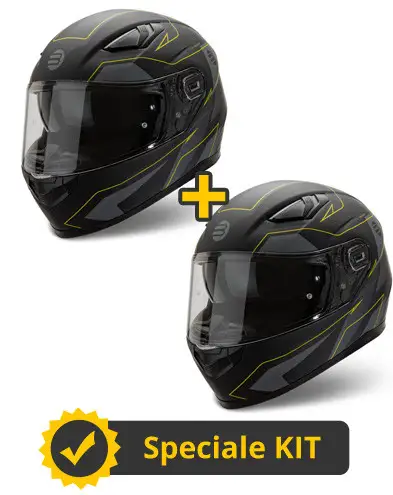 Descrizione prodotto Kit coppia Ventus Nero Giallo – 2 caschi integrali Befast