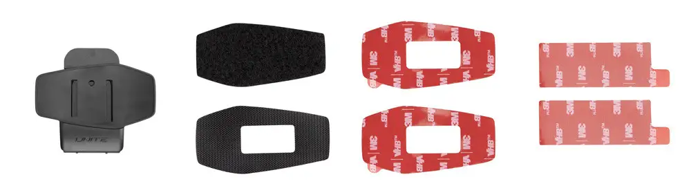 Il kit di ricambio per U-com4 e U-com2 contiene gli adesivi, i velcri e la staffa Clamp per il fissaggio dell’interfono e l’adesivo per il fissaggio della staffa della batteria. Tutti gli adesivi sono 3M, per garantirti la massima sicurezza.